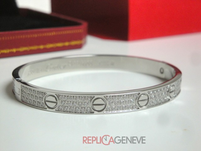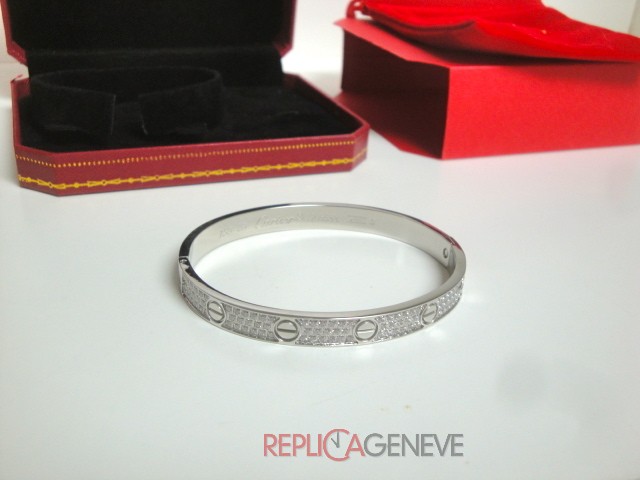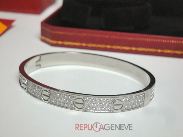 Cartier replica gioielli bracciale love white gold pavè diamond imitazione copia perfetta