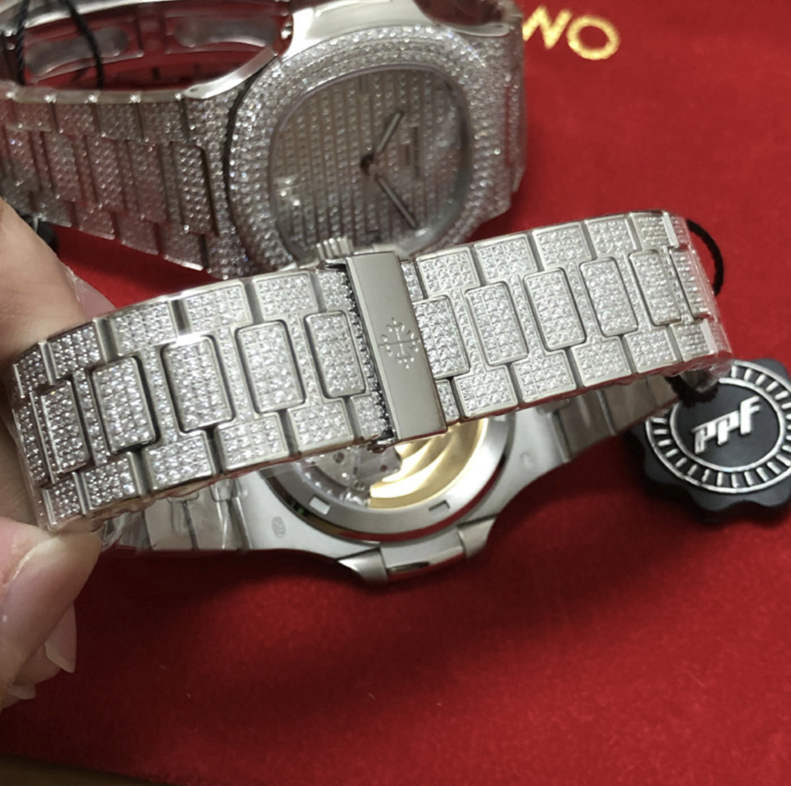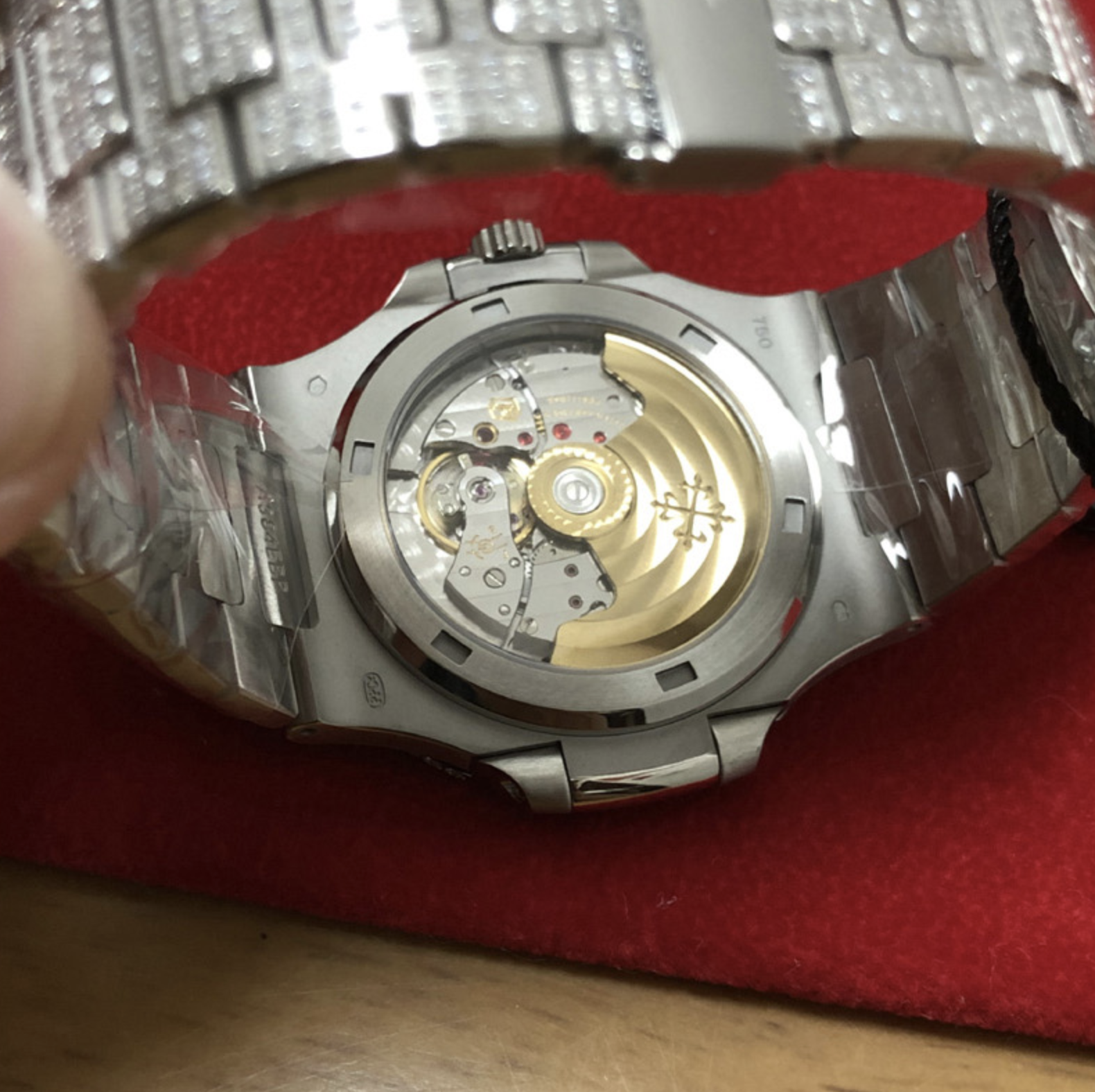 Patek philippe replica nautilus 5719 1g full diamonds dial pave clone movement