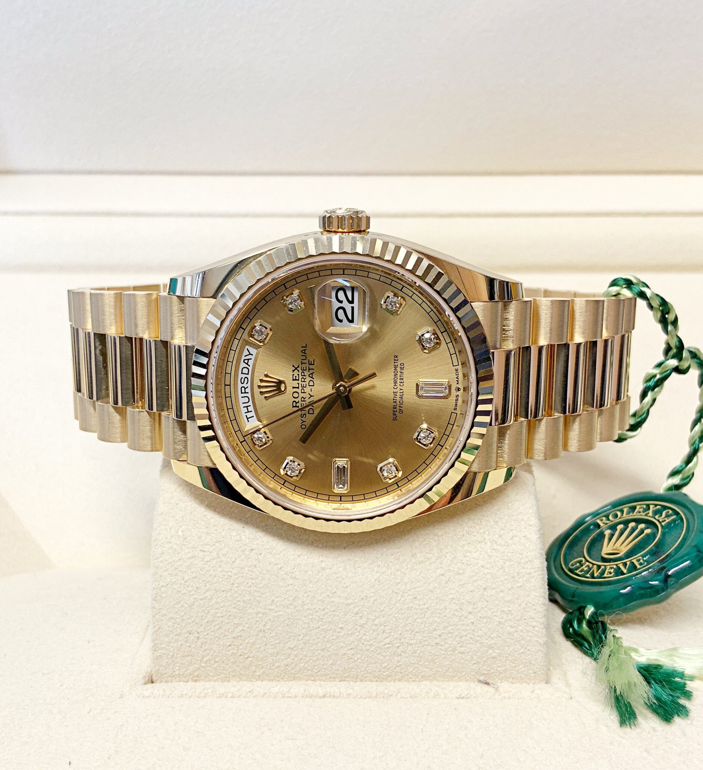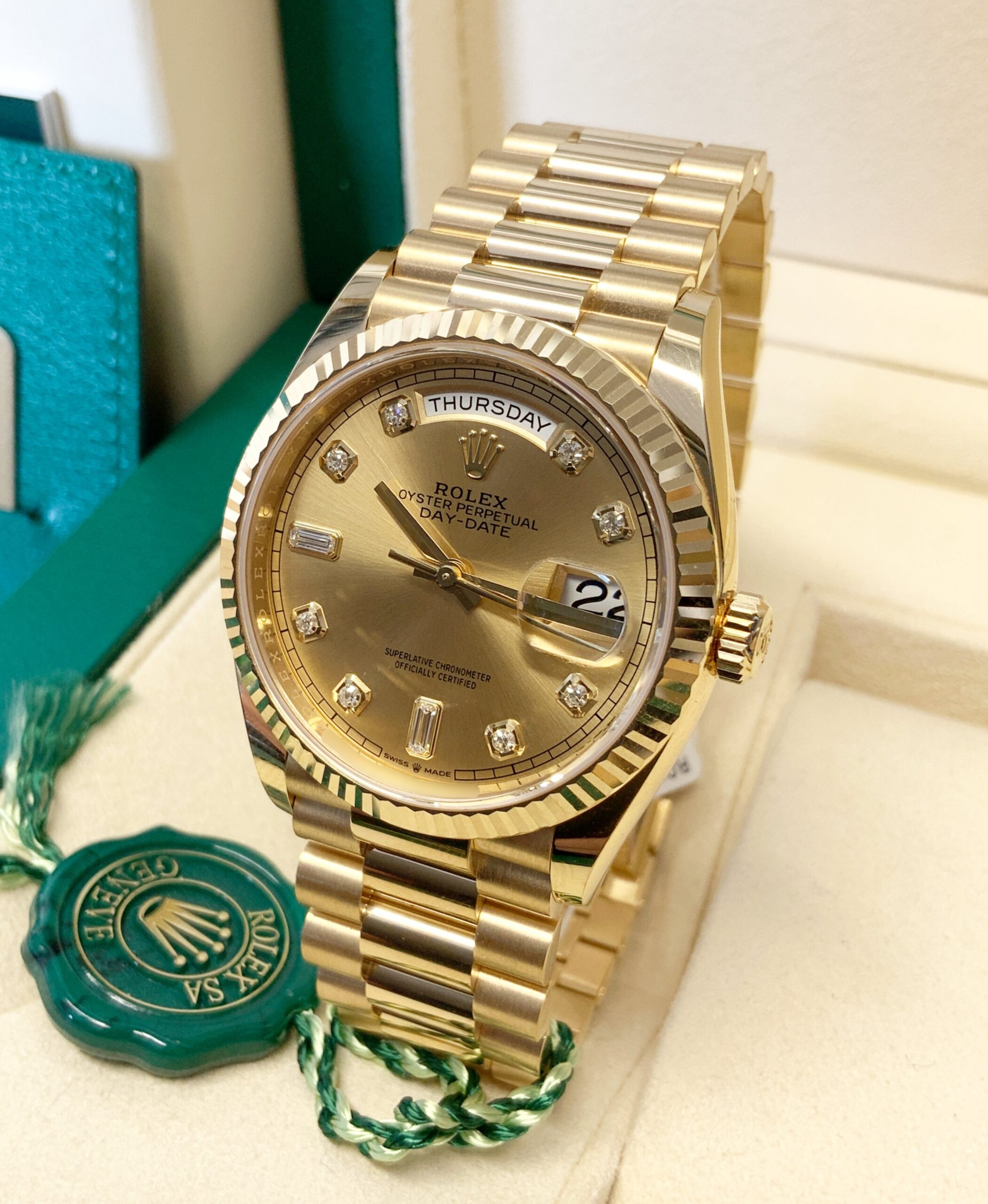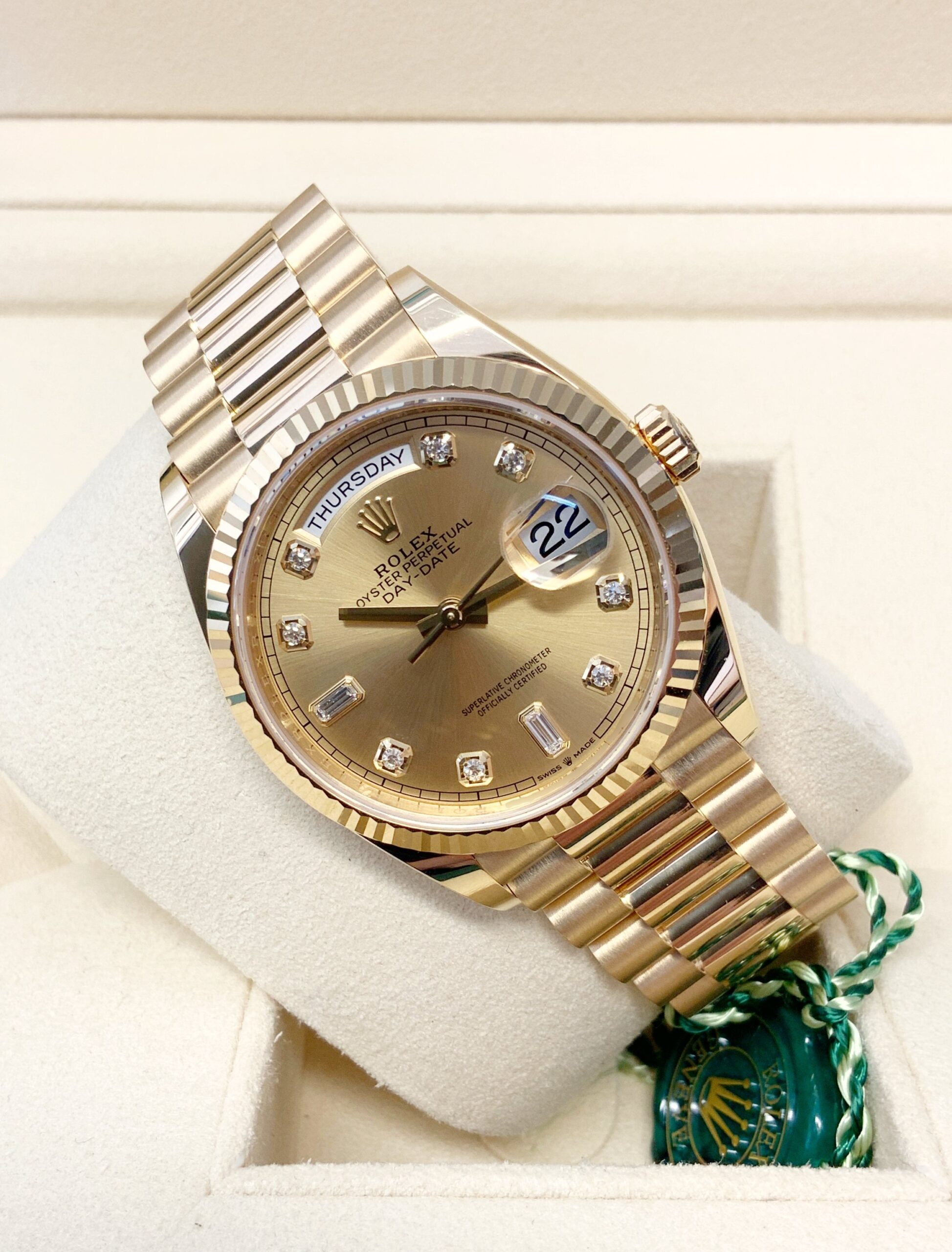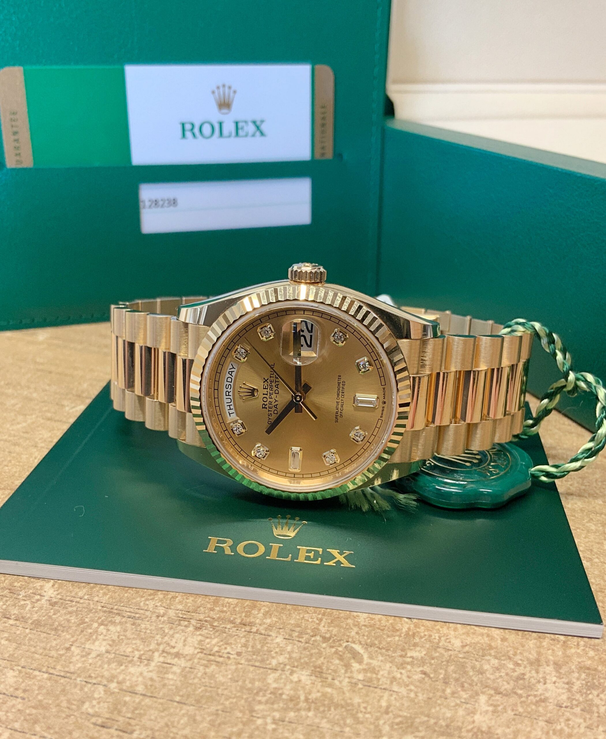rolex replica day-date 128238 yellow gold diamond dial 3255 clone movement