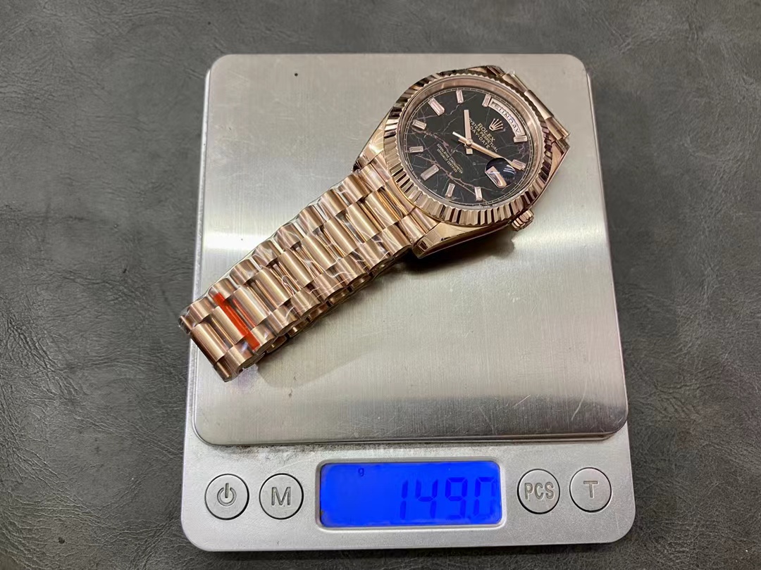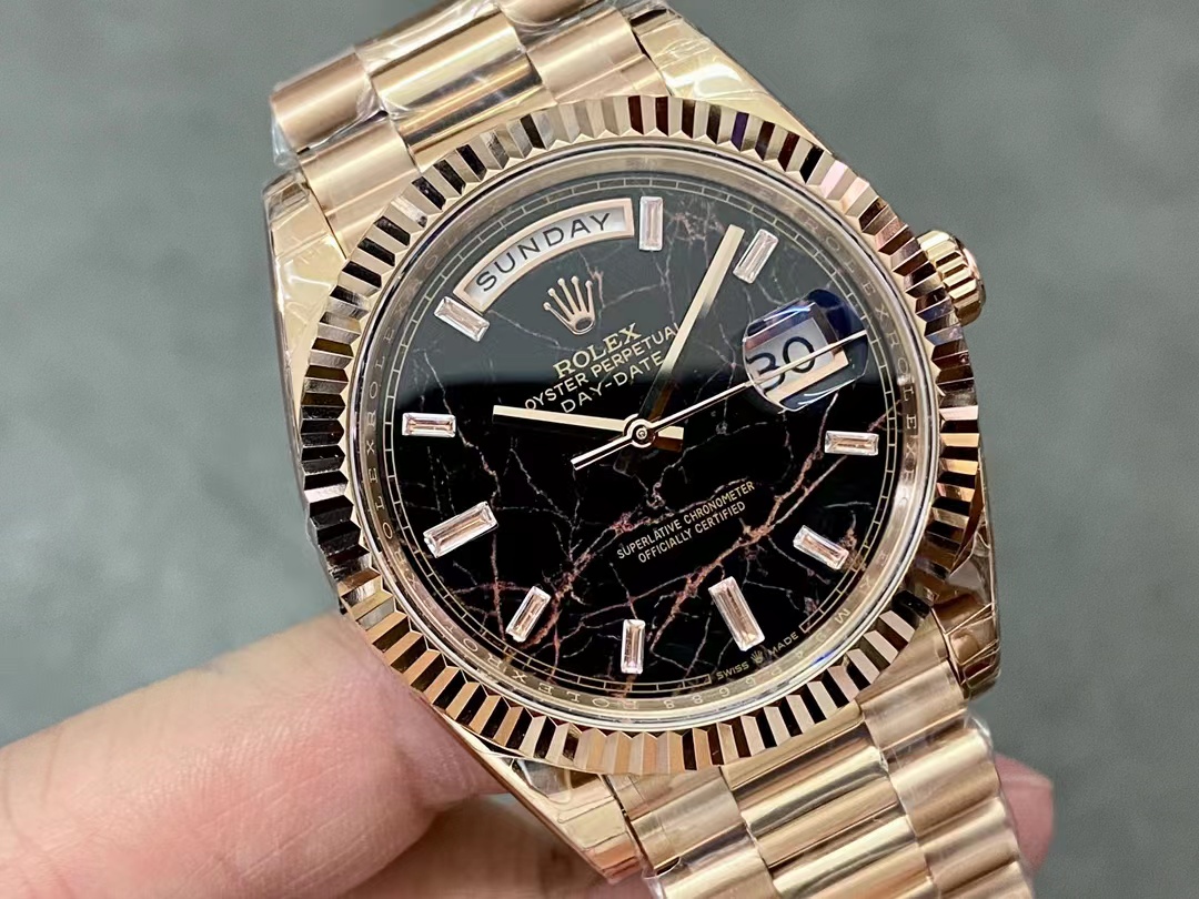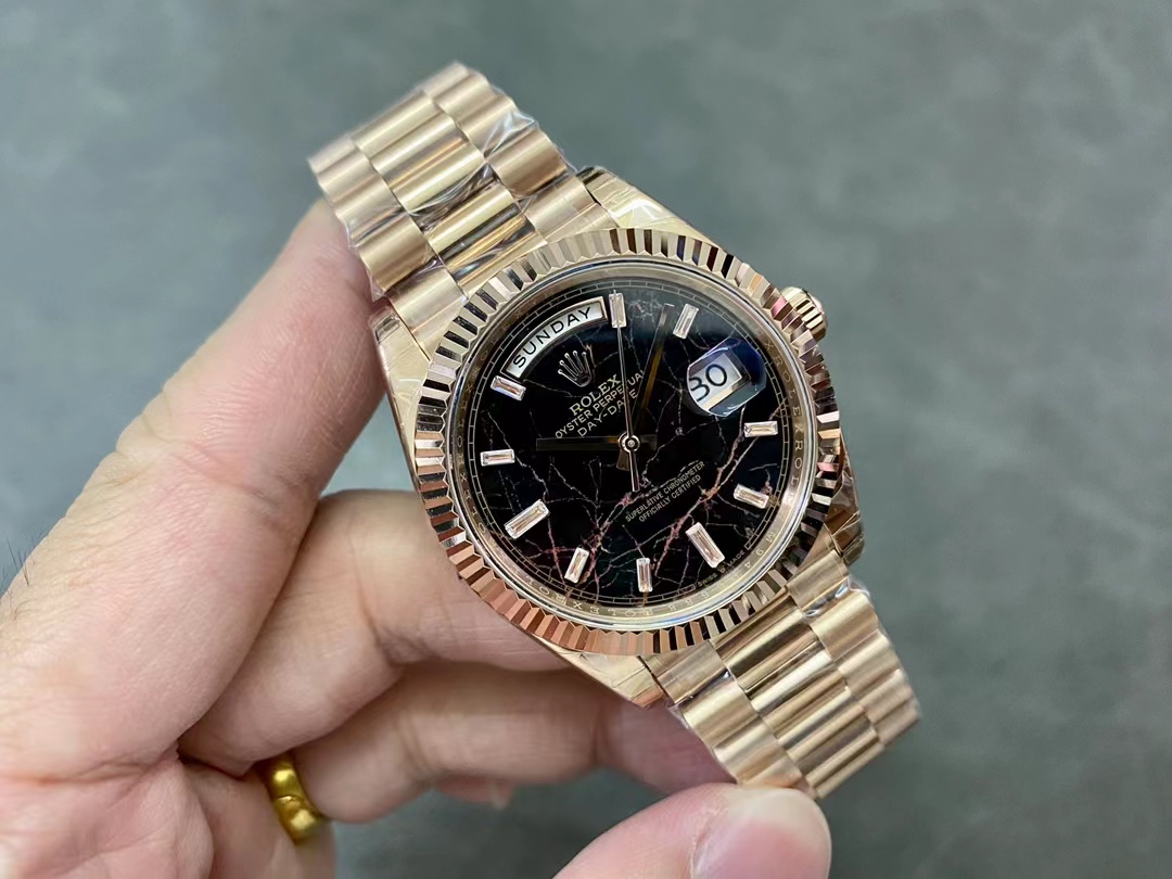 Rolex replica Day-Date II 228235 rose gold Eisenkiesel dial