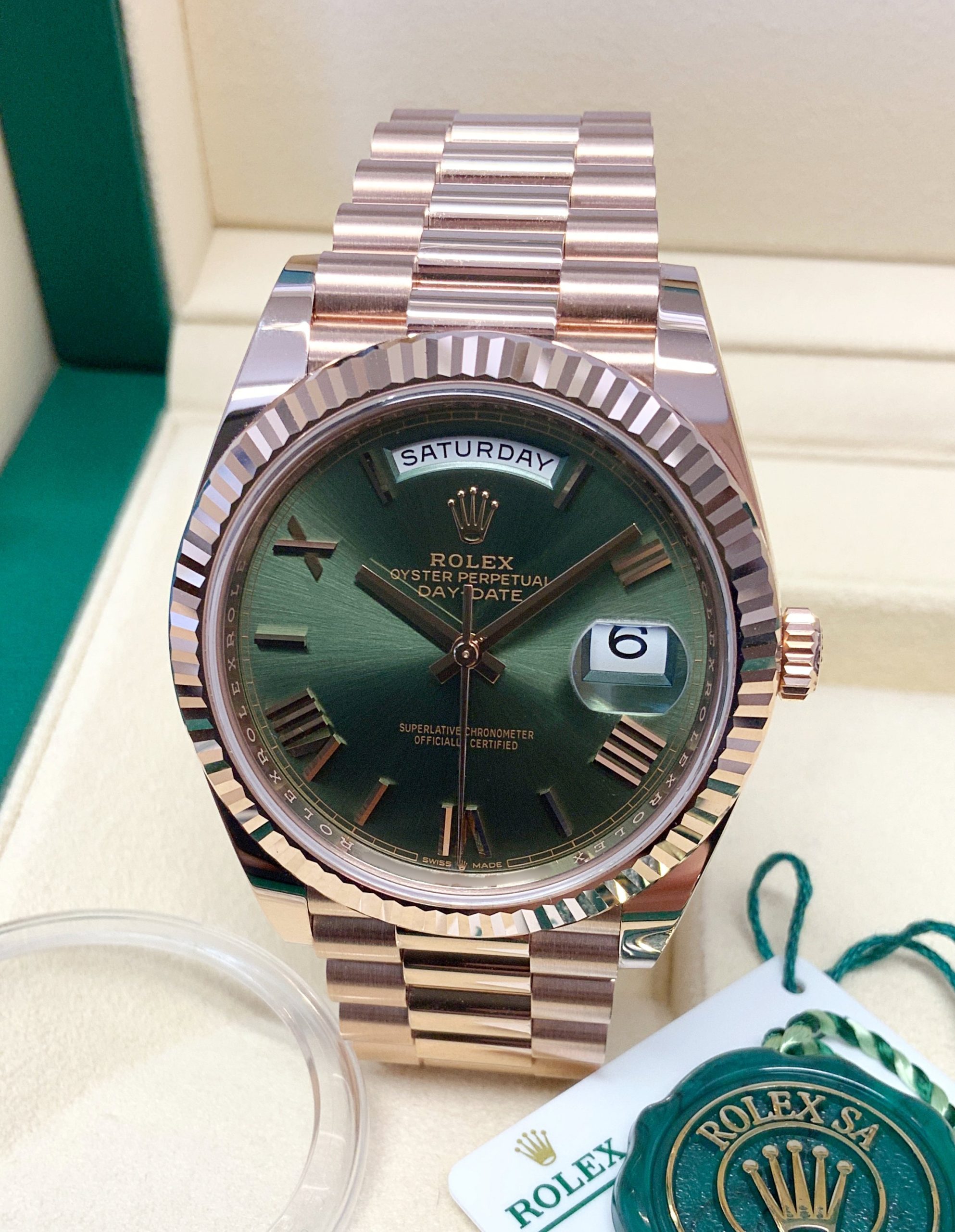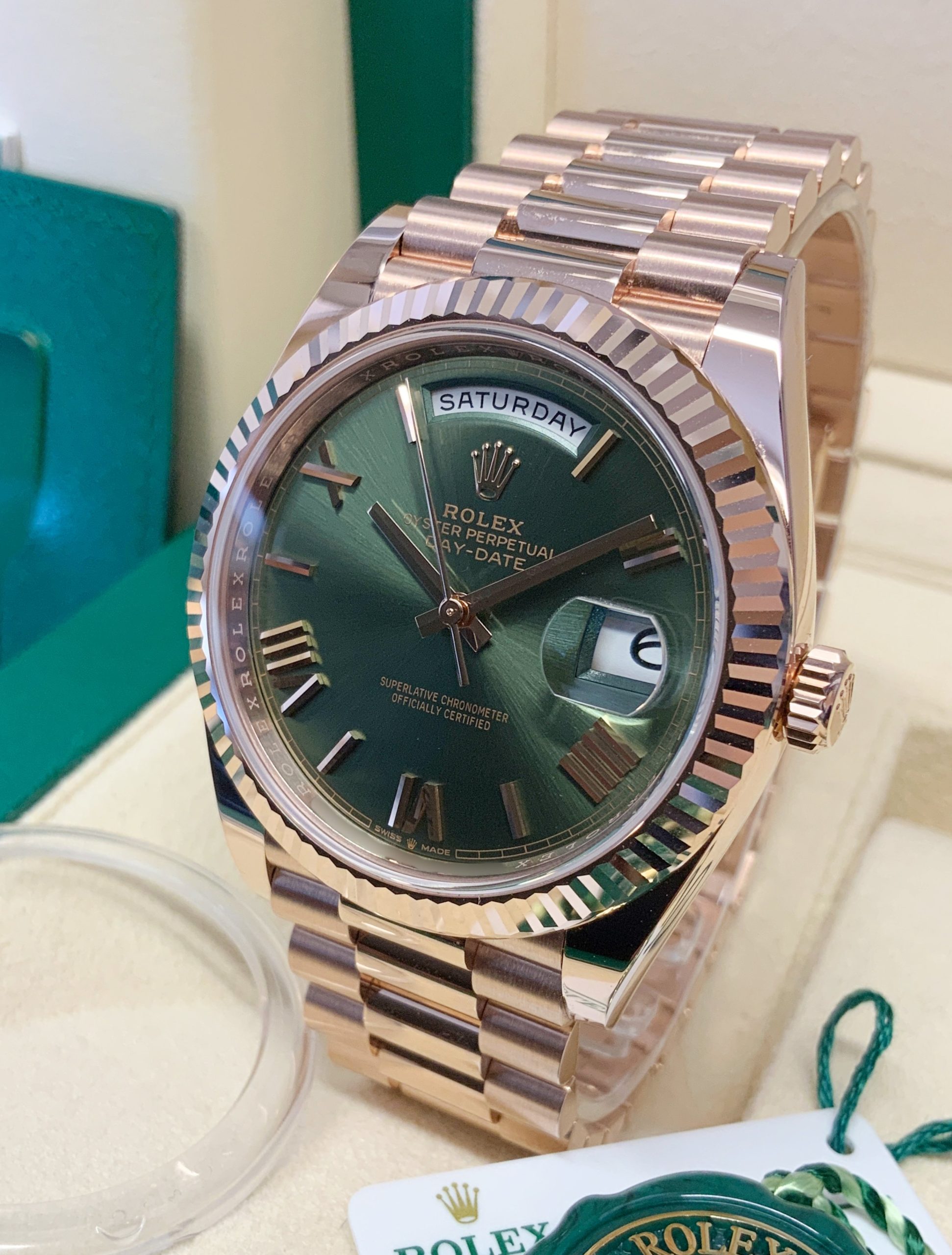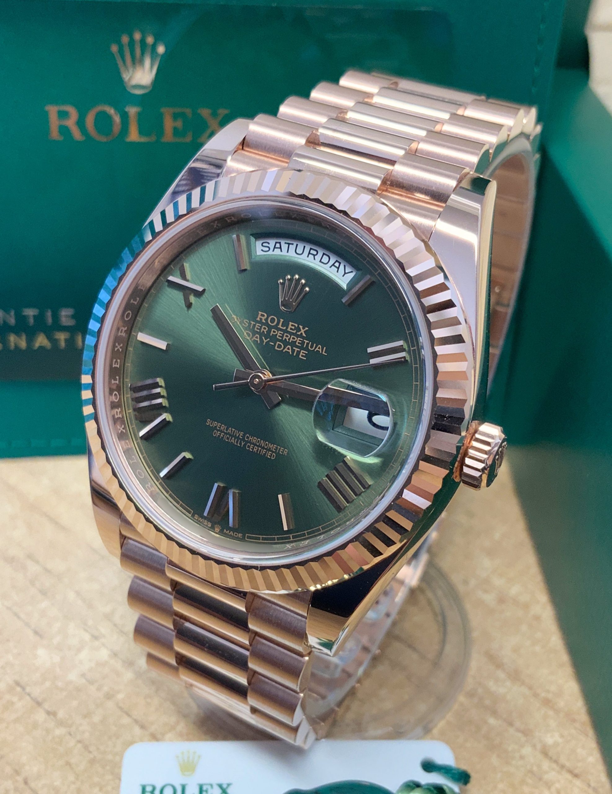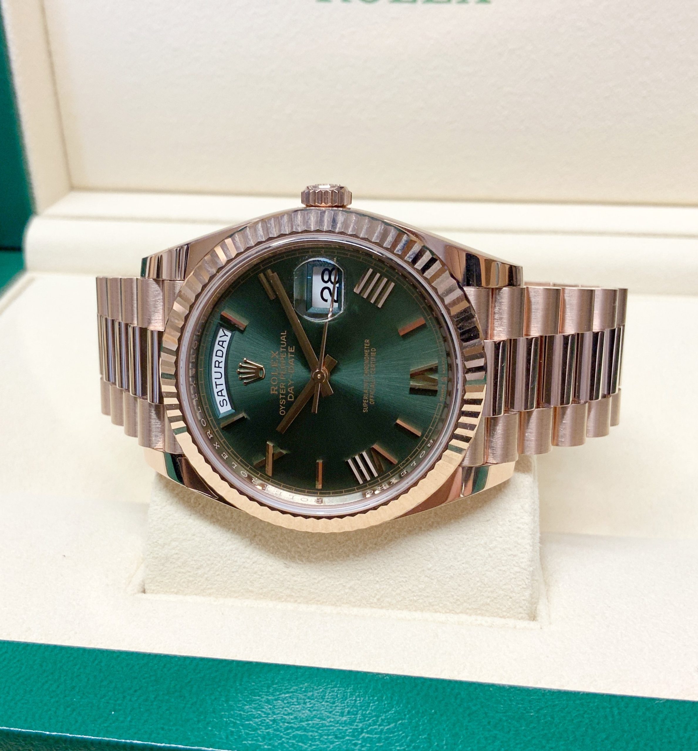 Rolex replica daydate II rose gold green dial orologio replica copia imitazione