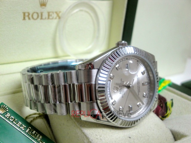 Rolex replica daydate ll strip president argentèè dial orologio replica copia imitazione