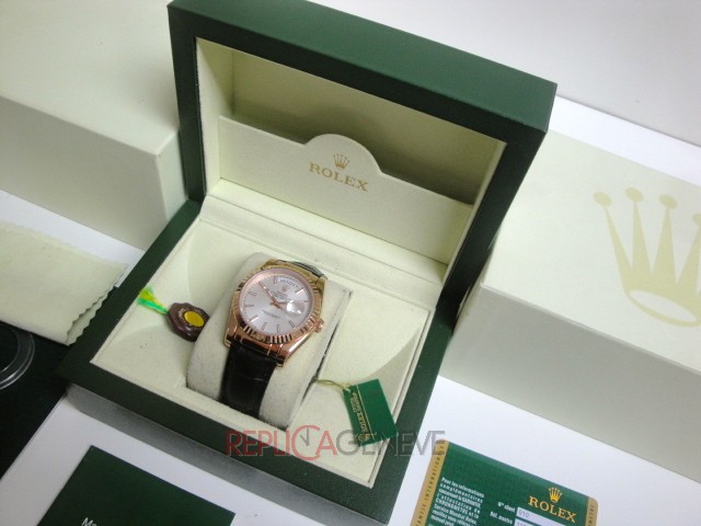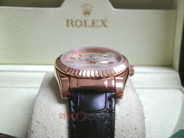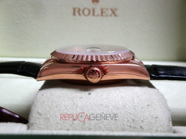 Rolex replica daydate rose gold chocolate leather strip orologio replica copia imitazione