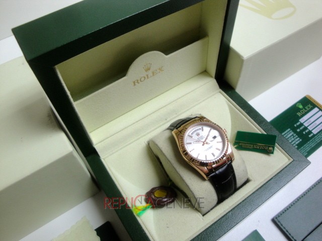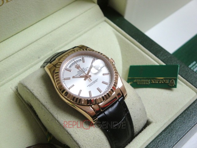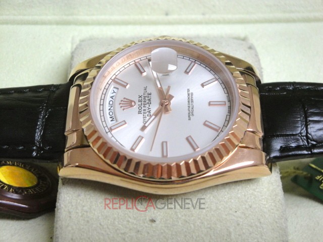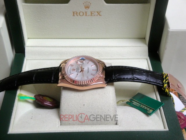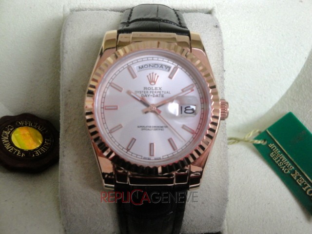 Rolex replica daydate rose gold argentèè leather strip orologio replica copia imitazione