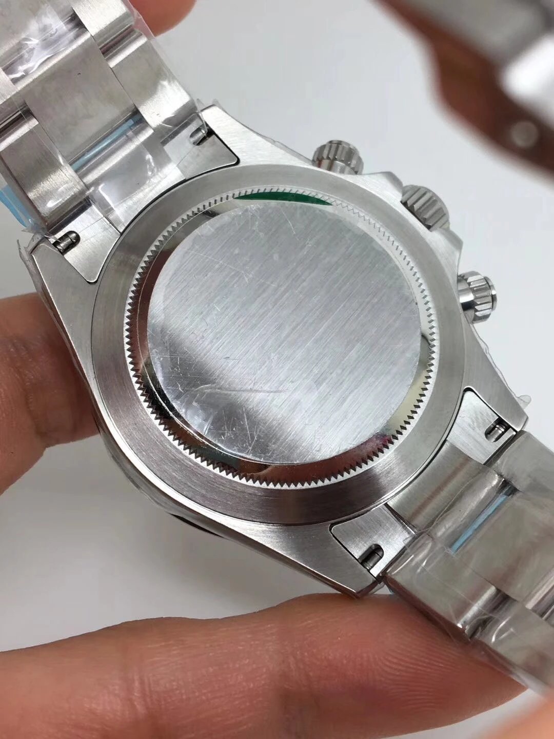 • Cassa acciaio Inox pieno 904 AISI L fresato dal pieno, realizzata su base originale con strumenti di disegno al CAD. Le casse sono tutte timbrate e serigrafie come in originale: numero di matricola da un lato tra le ansette e numero di referenza