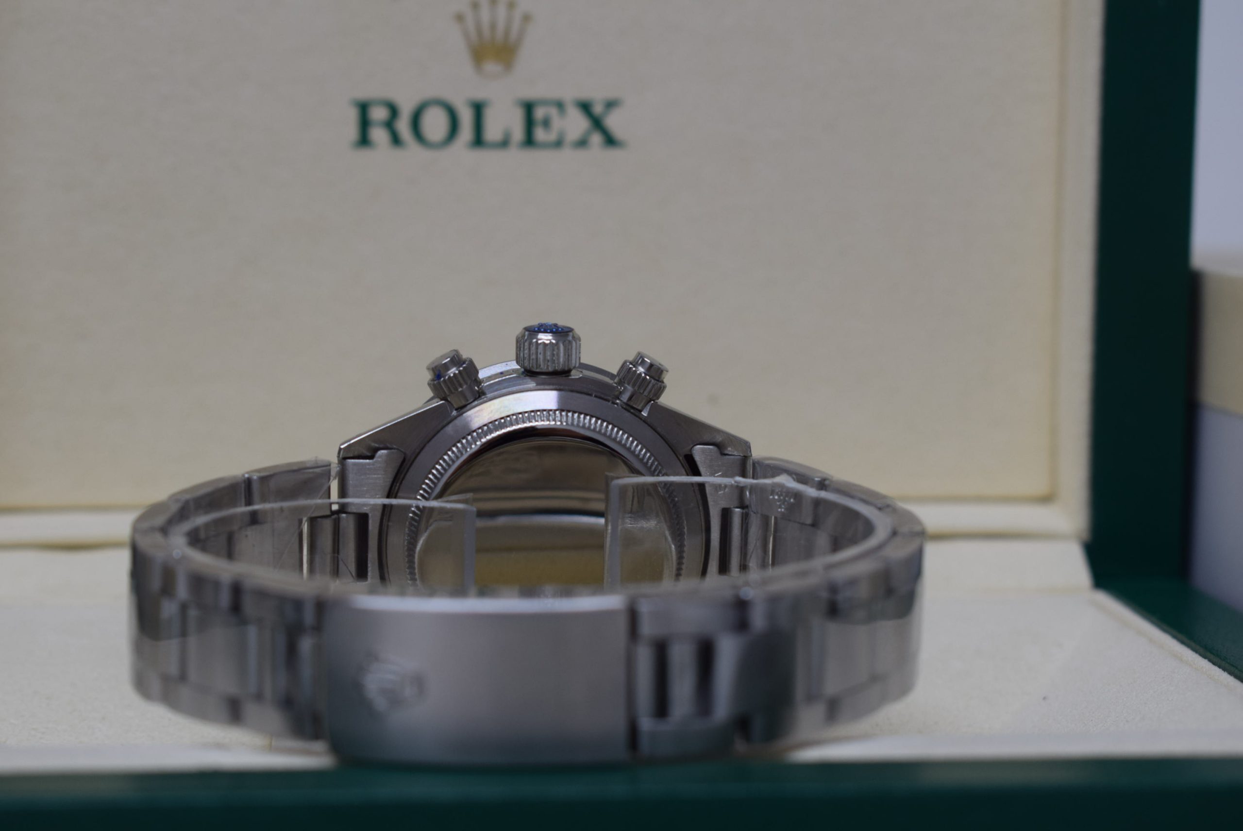 - Cassa acciaio Inox pieno 904 AISI L fresato dal pieno, realizzata su base originale con strumenti di disegno al CAD. Le casse sono tutte timbrate e serigrafie come in originale: numero di matricola da un lato tra le ansette e numero di referenza; fori alle anse come in originale Rolex