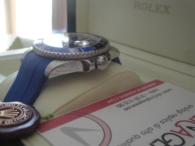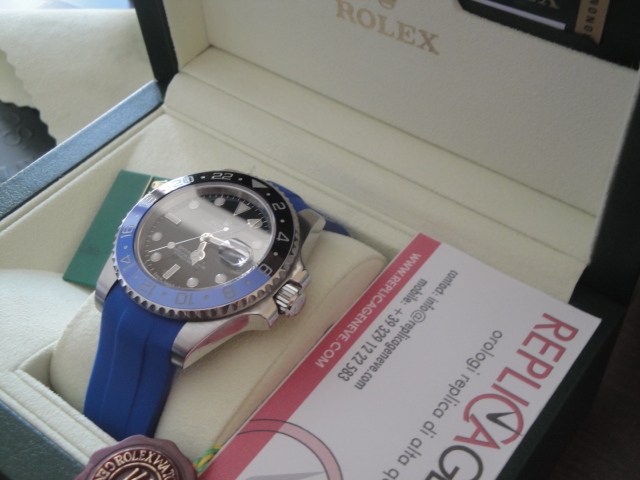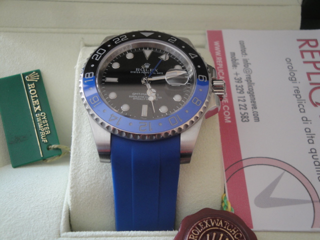 rolex replica gmt master II ceramica ghiera nera/blue girevole in ceramica originale fuso gmt perfettamente funzionante come originale rolex, esclusivo cinturino rubber-b