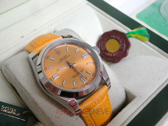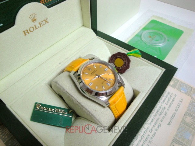 Rolex replica oyster perpetual acciaio yellow dial leather imitazione replica orologi