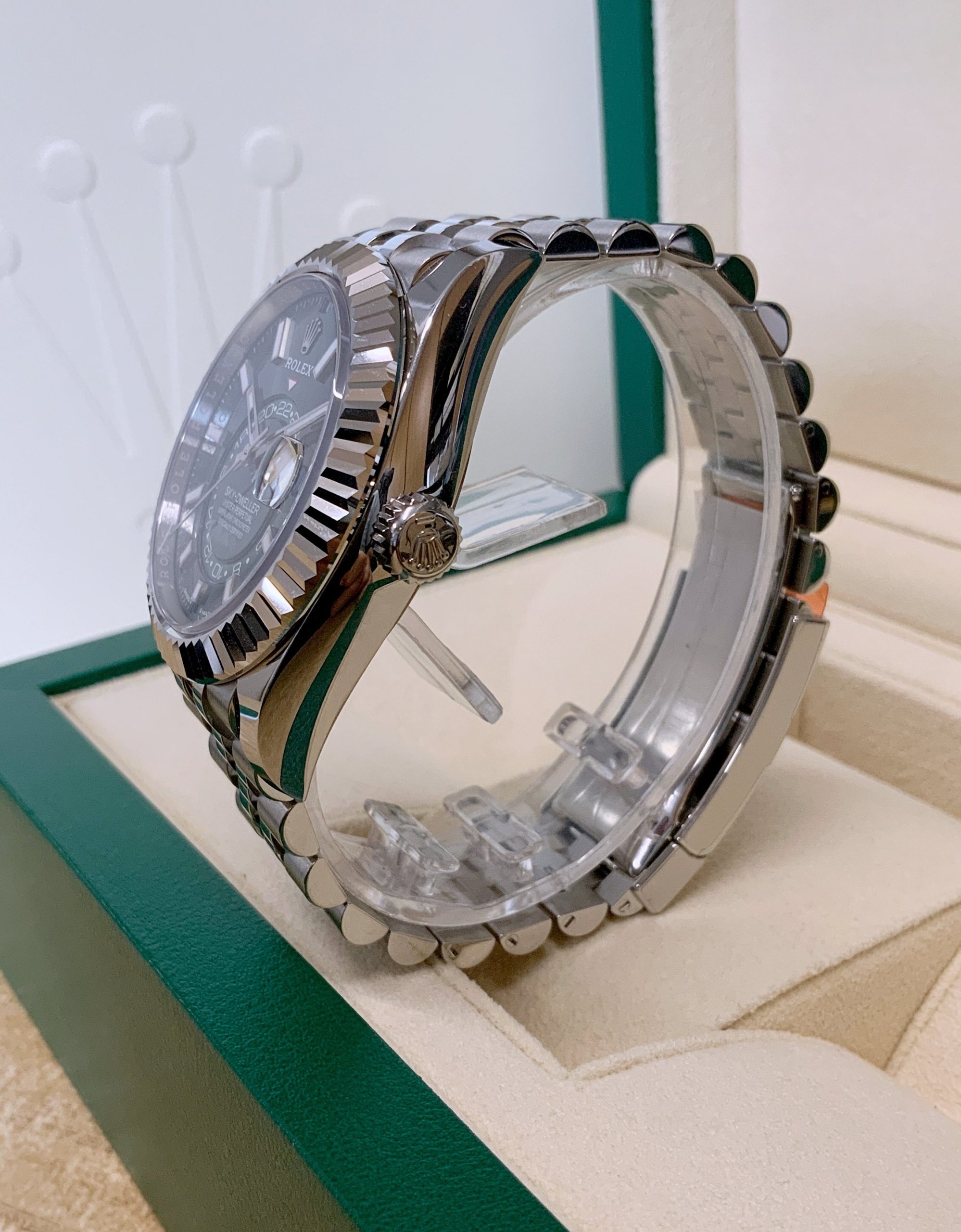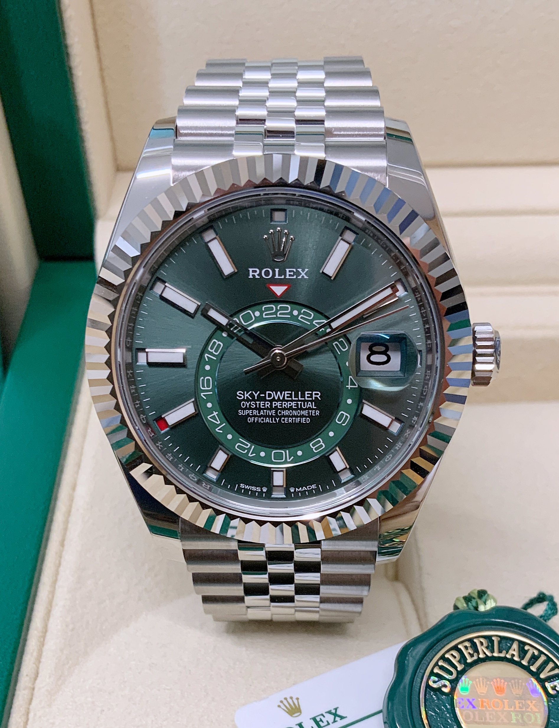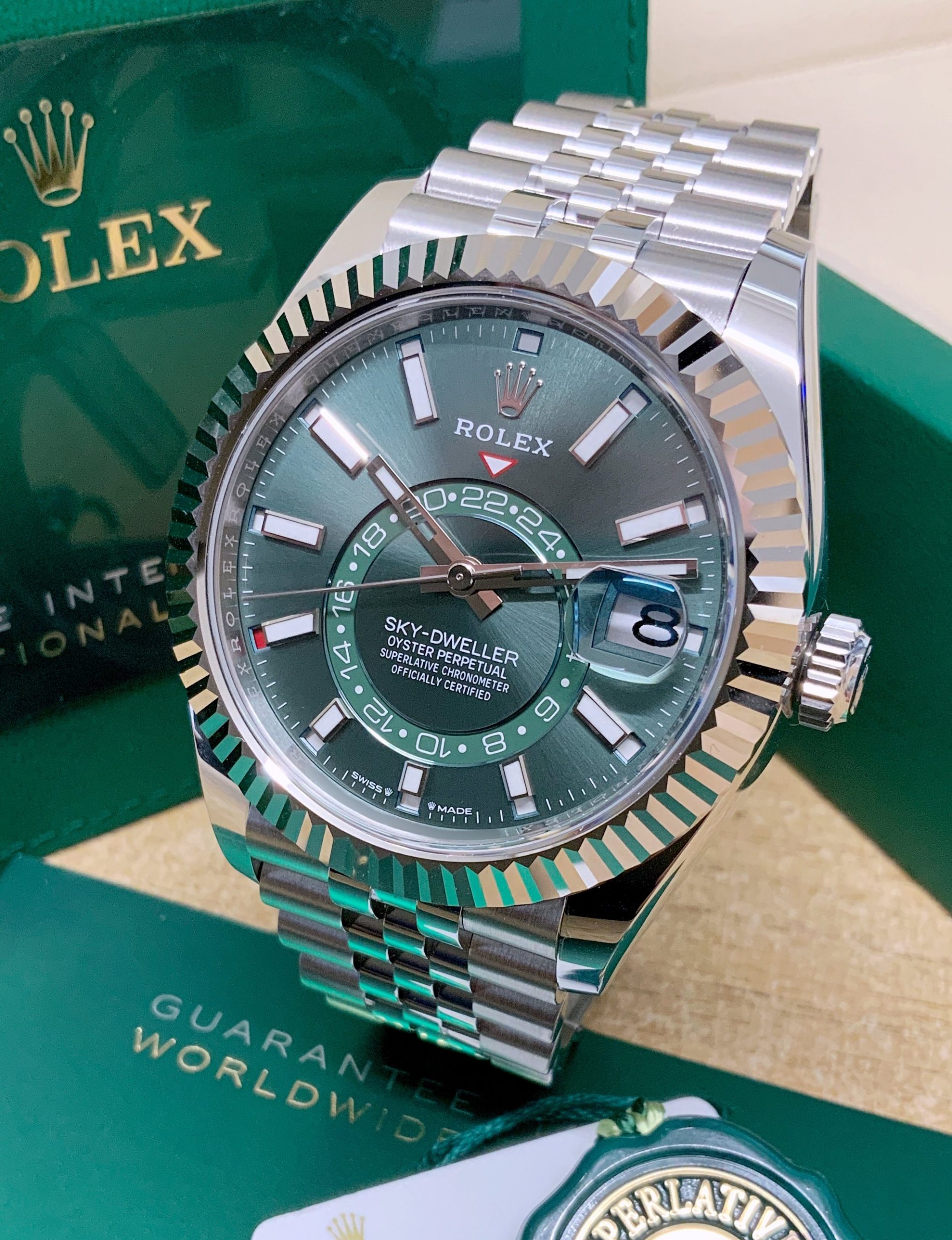 Inconfondibile capolavoro tecnologico protetto da 14 brevetti, l’Oyster Perpetual Sky-Dweller fornisce le informazioni di cui i grandi viaggiatori hanno bisogno per orientarsi nel tempo con un solo colpo d’occhio. Lanciato nel 2012, lo Sky‑Dweller si impone per la sua concezione rivoluzionaria, una perfetta alchimia tra meccanica sofisticata e comfort di utilizzo.