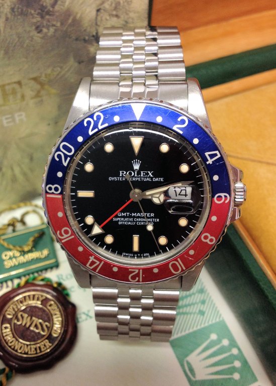 rolex replica gmt master II vintage ghiera girevole in acciaio fuso gmt perfettamente funzionante come originale rolex